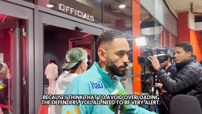巴西对阵突尼斯赛前,库尼亚在混采区接受了采访,谈了他与曼联队友姆伯莫的关系、为曼联效力的压力以及他最喜欢的位置。